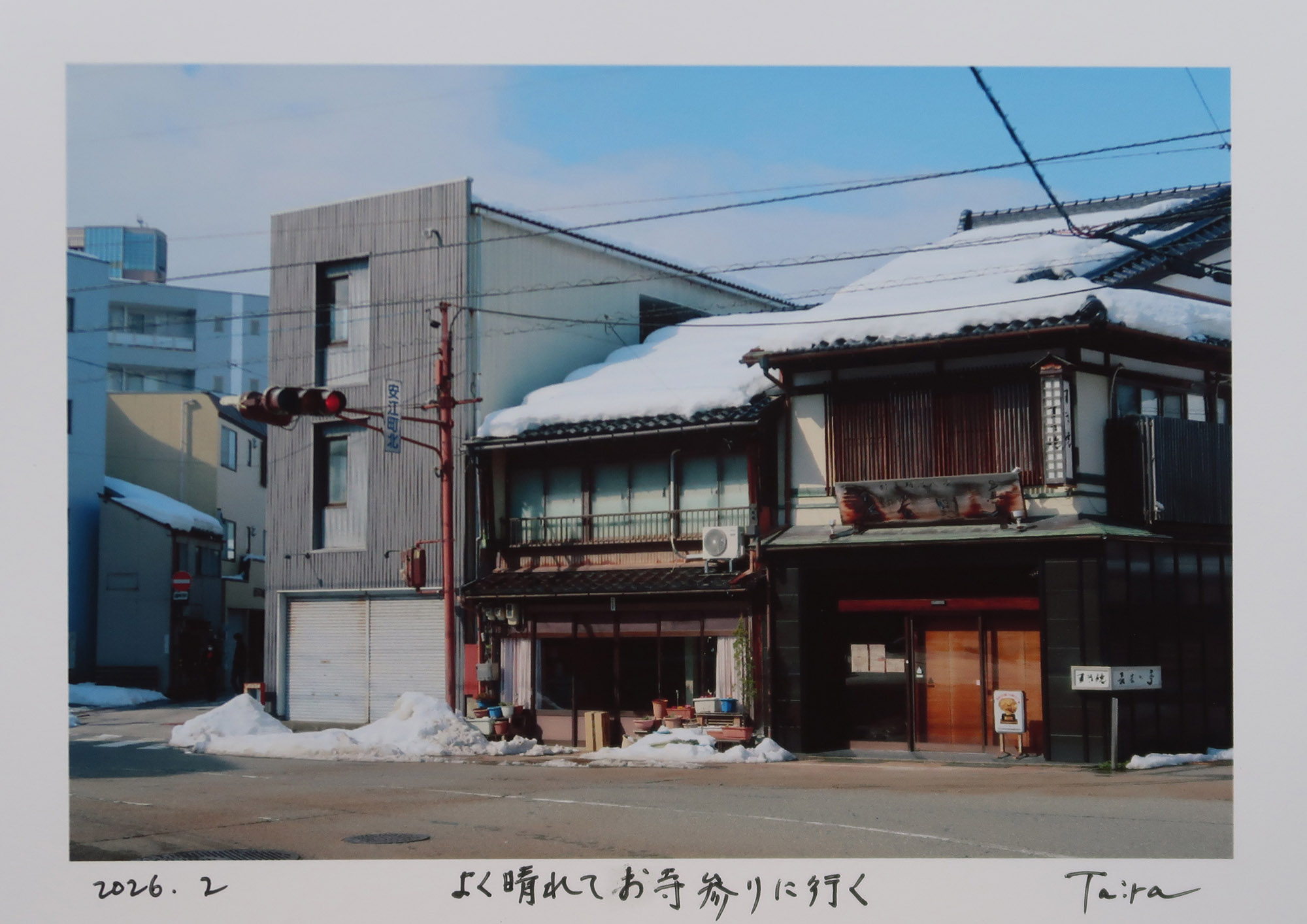 | 2026年2月21日(土) 先日久しぶりに金沢へ行ってきた 今年は大雪のようで雪を心配してたが 街の中は思ったより雪は少なかった それでもかなり降ったんだろうと思わせるところもあり 少し前にニュースで見た皆で雪かきしている姿を思い出した 地元のエストモさんはちゃんと長靴を持ってきていた 色々と用事を済ませ夕方少し時間があったので 鈴木大拙館と金沢21世紀美術館に行った 前に来たときは鈴木大拙館はなかったし 北陸新幹線もなかった もうそんなに経ったのか 駅に向かうバスの中から 雪の残る暮れてしまった金沢の街を見ていた この20年近く僕は何をしてたんだろう バスの窓ガラスに映ったおじさんに問いかける 大きなため息一つついて 写真は撮ってたよな それだけしか思いつかなかった |
