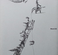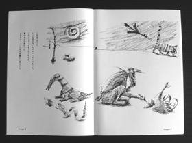 2008年 6月発行 砂漠のスネーク 「砂漠の黒犬」 文・画 エストモ 18×17センチ 和綴じ カバー 本文 32ページ sold out |